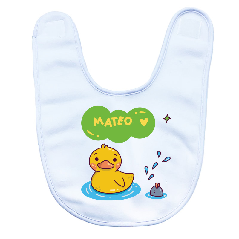 Este babero cierre velcro personalizado con patito y nombre es un gran regalo para una fiesta de Baby shower y dar la bienvenida a un nuevo bebé o para alguna ocasión especial.