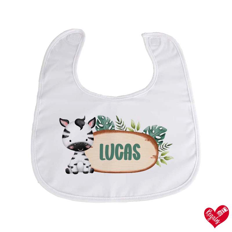 Este babero cierre velcro personalizado “modelo Cebra” es también una gran idea de regalo para una fiesta de Baby shower y dar la bienvenida a un nuevo bebé o para alguna ocasión especial.
