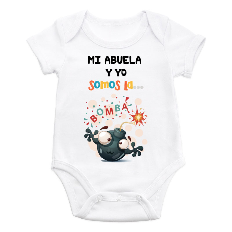 Un body para bebé diseño «Mi abuela y yo somos la bomba» es siempre un regalo original y práctico.