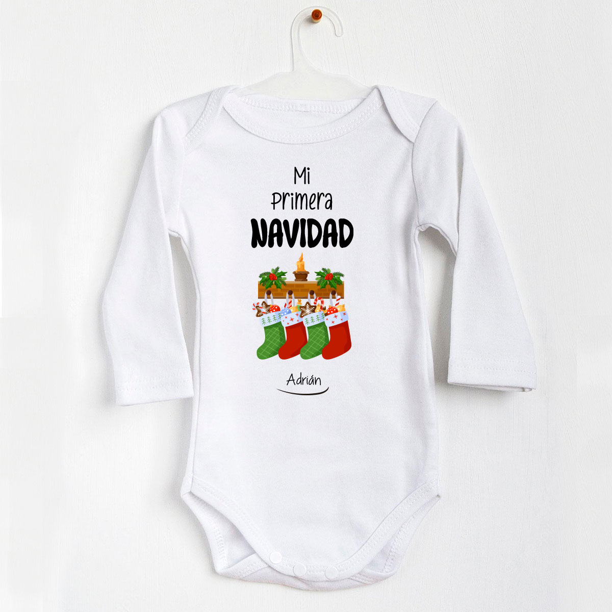 Body de Navidad para bebé diseño «Calcetines de Navidad» con un montón de regalos de Navidad, perfecto para que el bebé luzca un body muy gracioso y divertido estas Navidades que seguro seran inolvidables …No hay mejor regalo en Navidad que la llegada de un bebé!!