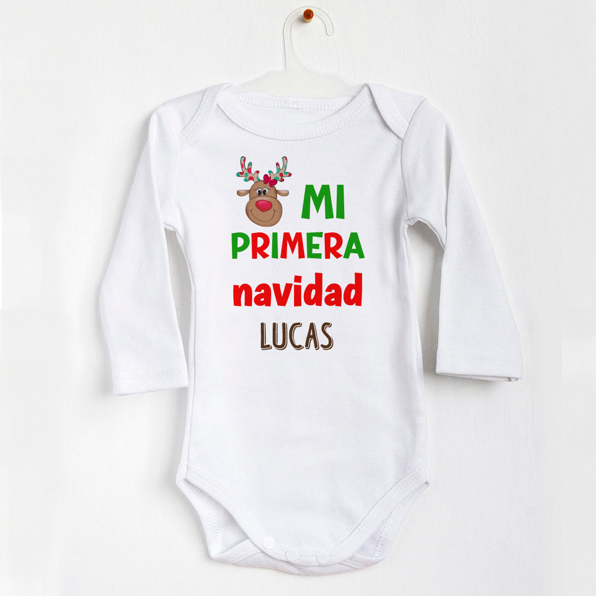 Este body con diseño «Mi primera Navidad. Modelo reno Alegre» es también un gran regalo para una fiesta de Baby shower para bebes que van a nacer próximos a la Navidad y dar la bienvenida a un nuevo bebé o para alguna ocasión especial como sorprender a unos futuros abuelos. Es una manera muy tierna y simpática de dar la noticia.