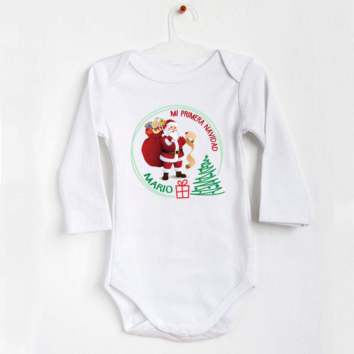 Body de Navidad para bebé diseño «Mi primera Navidad» con Papá Noel y arbol y regalo de Navidad, perfecto para que el bebé luzca un body muy gracioso y divertido estas Navidades que seguro seran inolvidables …No hay mejor regalo en Navidad que la llegada de un bebé!!