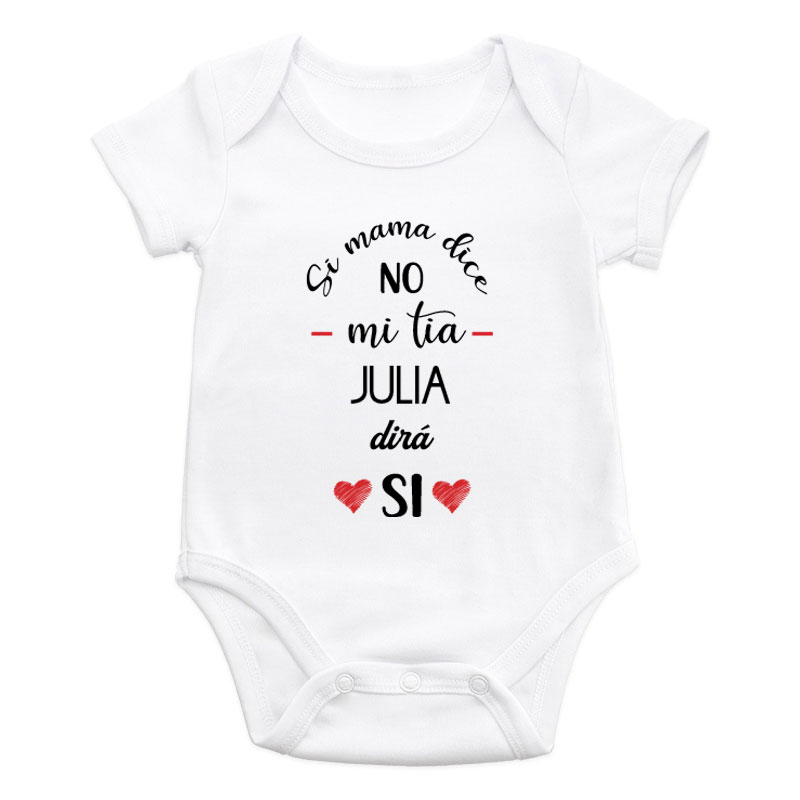Un body para bebé diseño «Si mamá dice no…» y con nombre personalizado es siempre un regalo original y práctico.