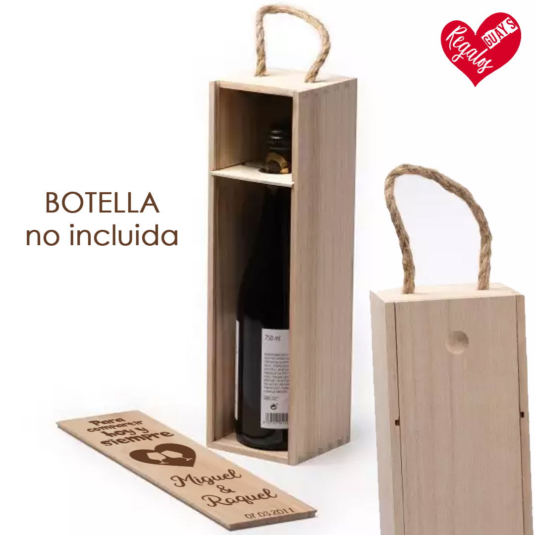 La caja de vino personalizada “Mejoras como el buen vino” es un regalo divertido, elegante y atemporal. Su mensaje, grabado directamente sobre la madera, convierte una botella de vino en un detalle con personalidad, perfecto para sorprender en cumpleaños de cualquier edad.