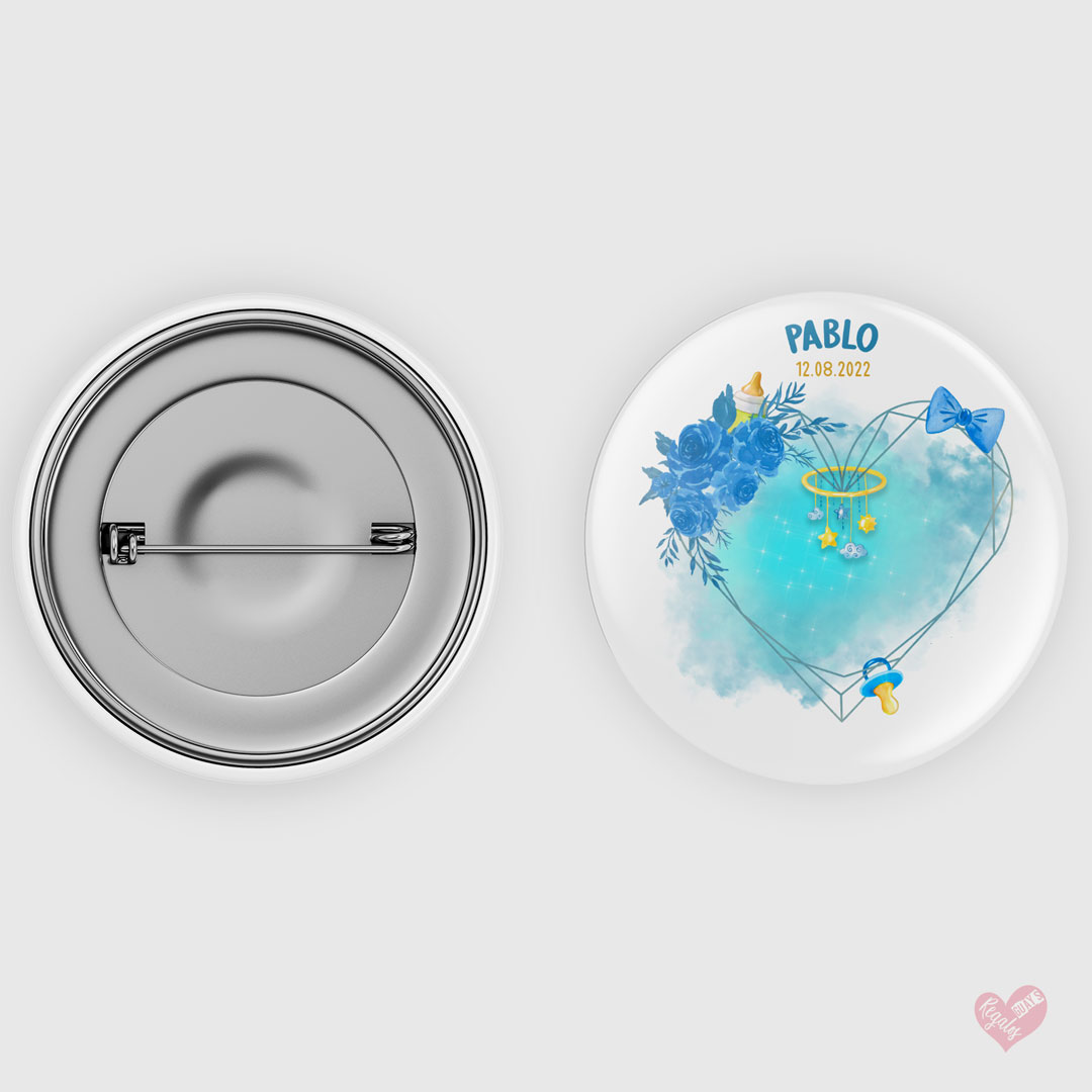 Chapa personalizada modelo acuarela para bautizo de niño