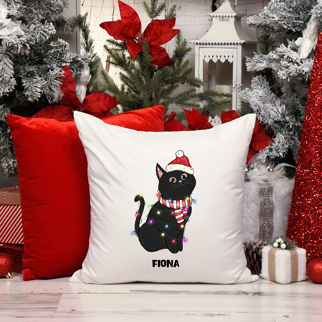 Regala este cojín personalizado con el nombre del gatito/a a su dueño. Es un detalle muy bonito para regalar en Navidad
