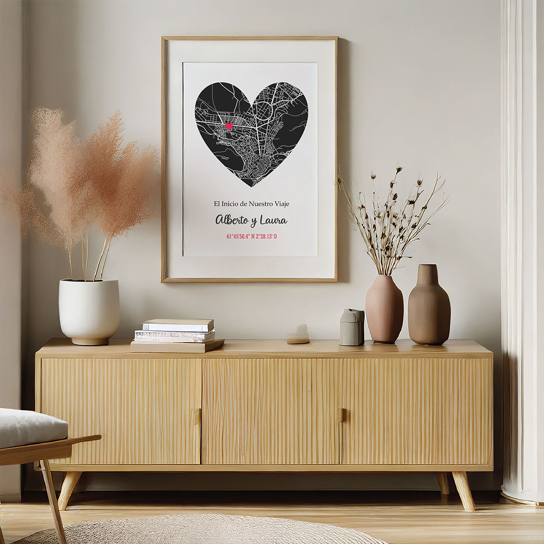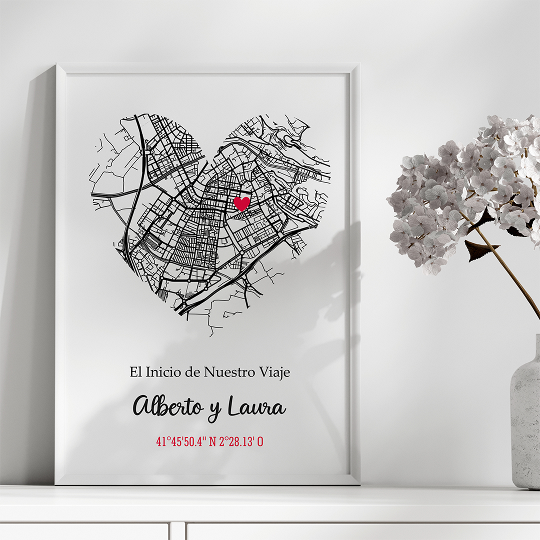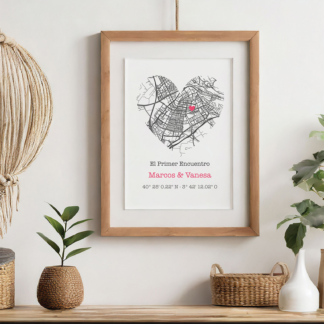 Personalízalo con el lugar especial donde os encontrasteis por primera vez, donde os disteis el primer beso, o cualquier otro momento significativo que desees recordar.
