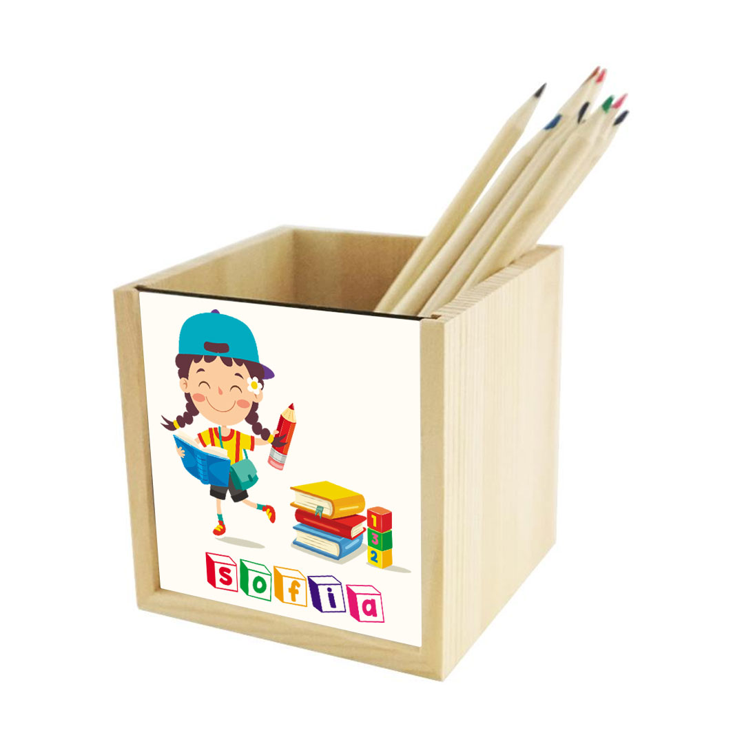 Los portalápices de madera son ideales como decoración de escritorios de niñas.