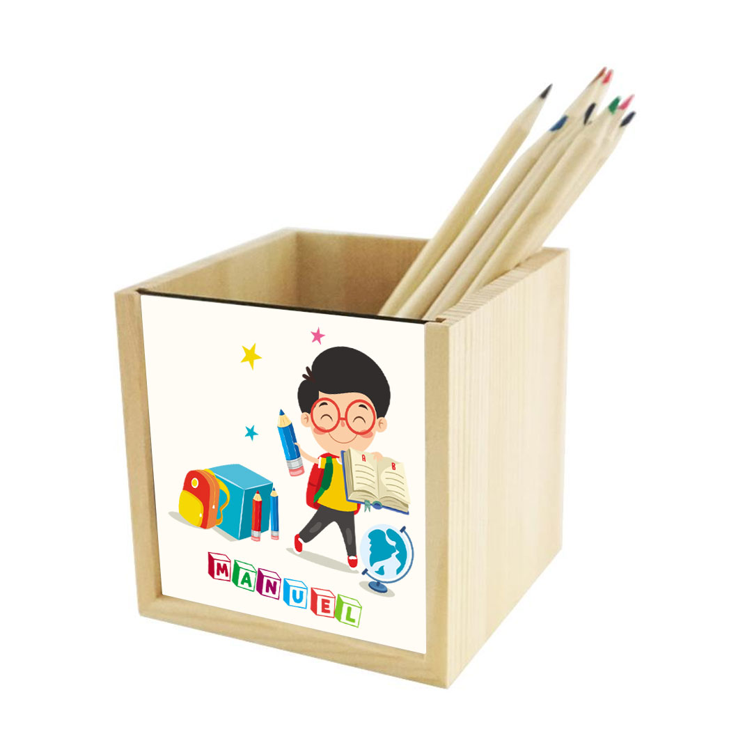Los portalápices de madera son ideales como decoración de escritorios de niños.