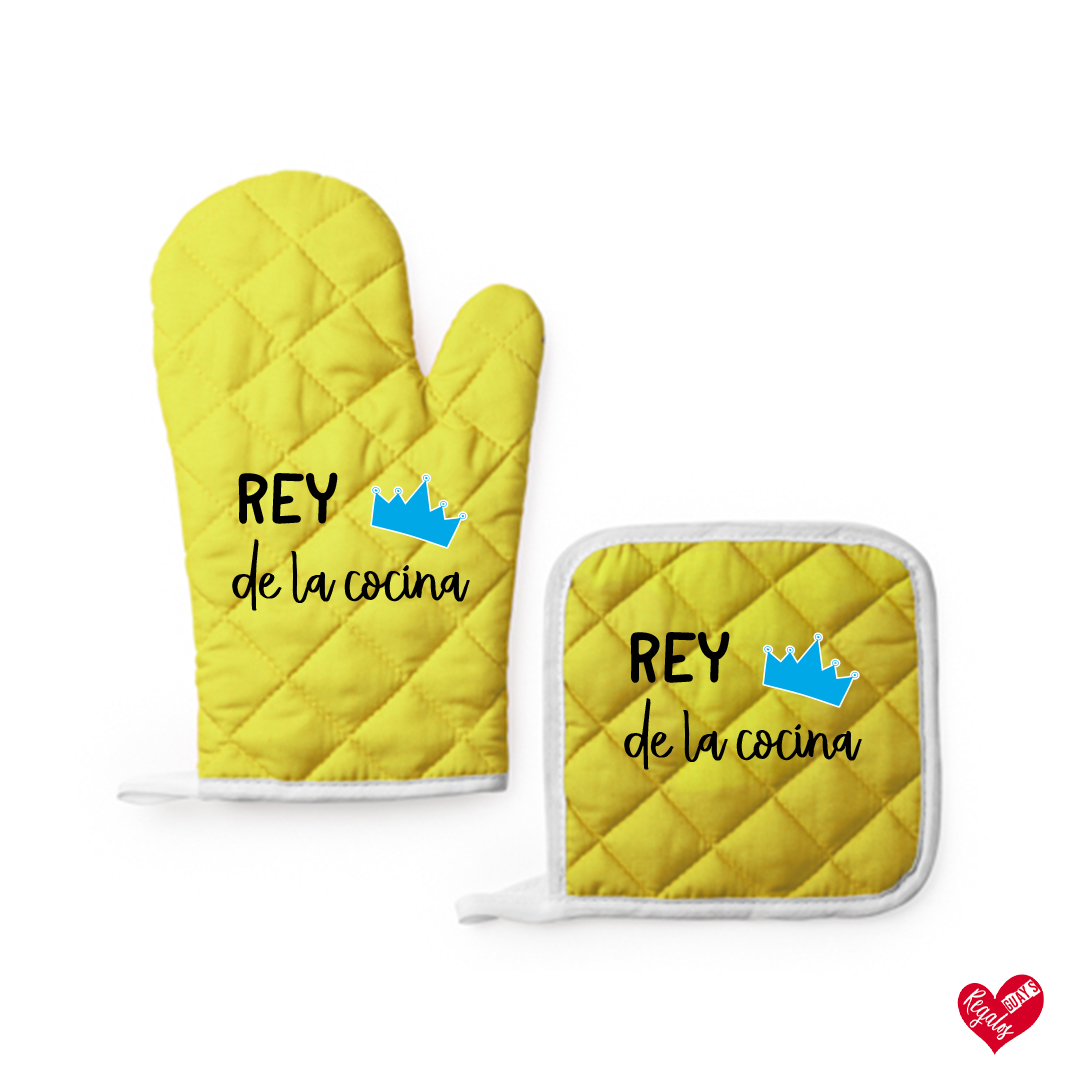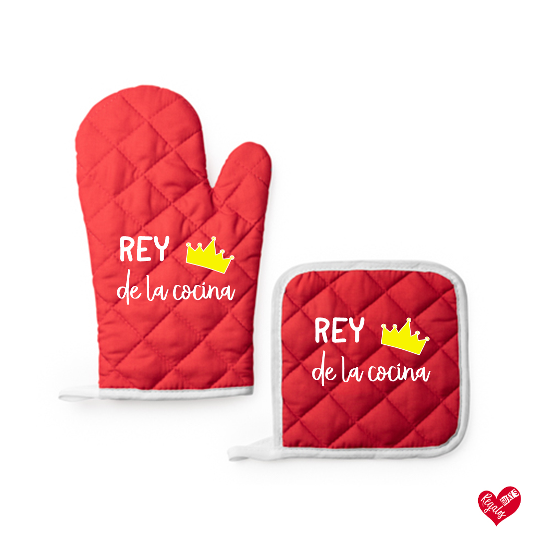 El set de cocina personalizado «Rey de la cocina» ofrece una experiencia culinaria única y exclusiva. Consta de un agarrador y una manopla confeccionados en suave algodón/poliéster, garantizando comodidad y funcionalidad mientras cocinas tus platos favoritos.