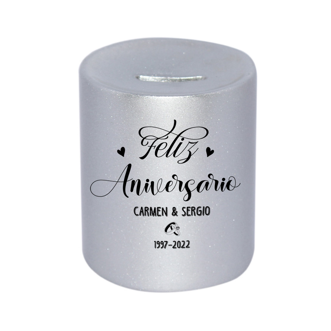 Hucha de cerámica plateada con material de alta calidad resistente a ralladuras y golpes. La hucha es de color plata.