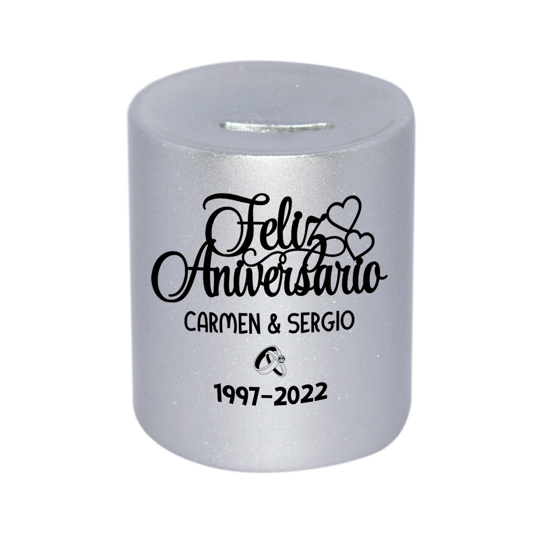 Una hucha siempre sirve para motivar el ahorro de dinero para cumplir con cualquier sueño o meta. Disfruta de una bodas de plata ahorrando para un viaje o un regalo inolvidable!!