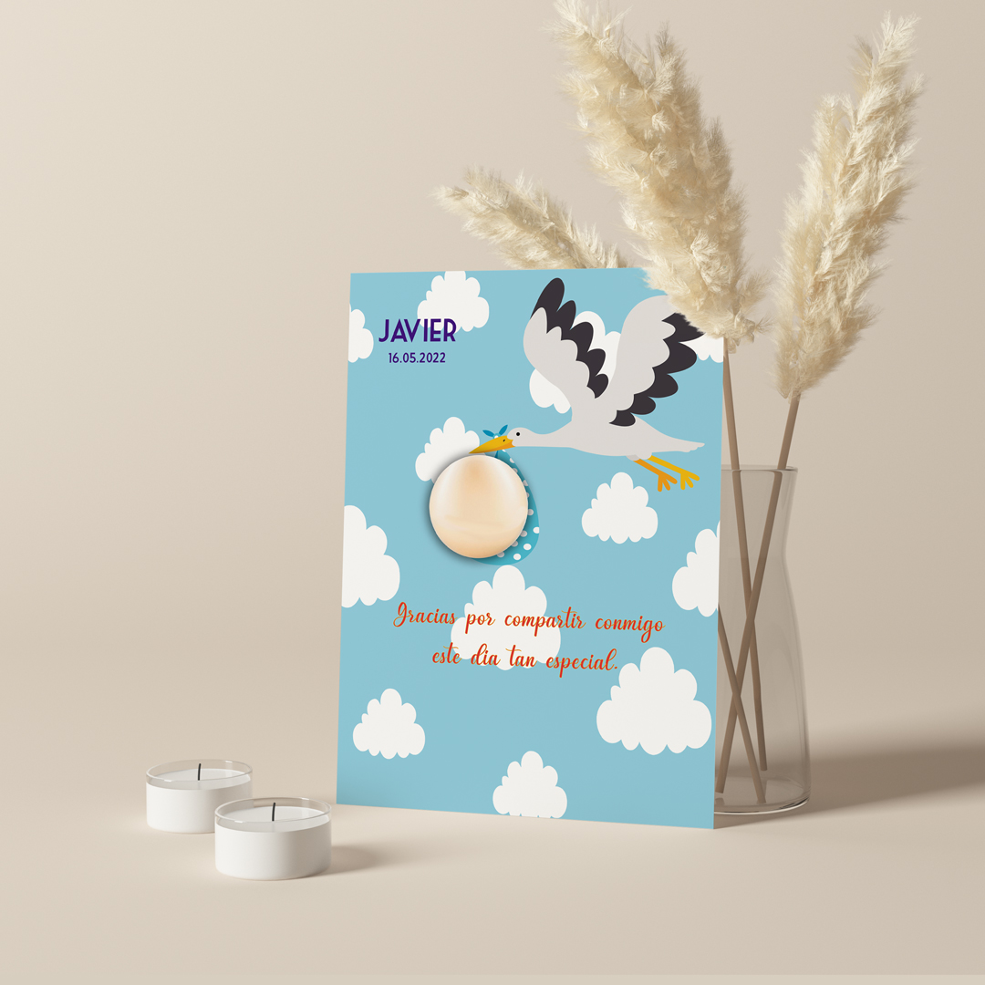 Labiales personalizados para bautizo de niño. Acabado cromado