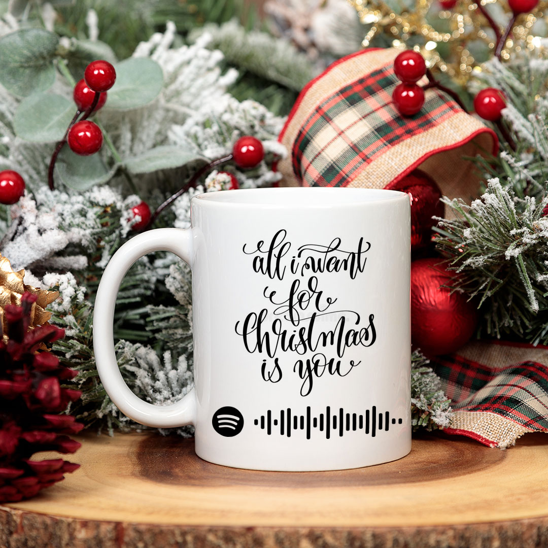 Taza con código Spotify de la canción de Mariah Carey «All I want for Christmas is you» … Porque La Navidad empieza cuando lo canta Mariah Carey!!