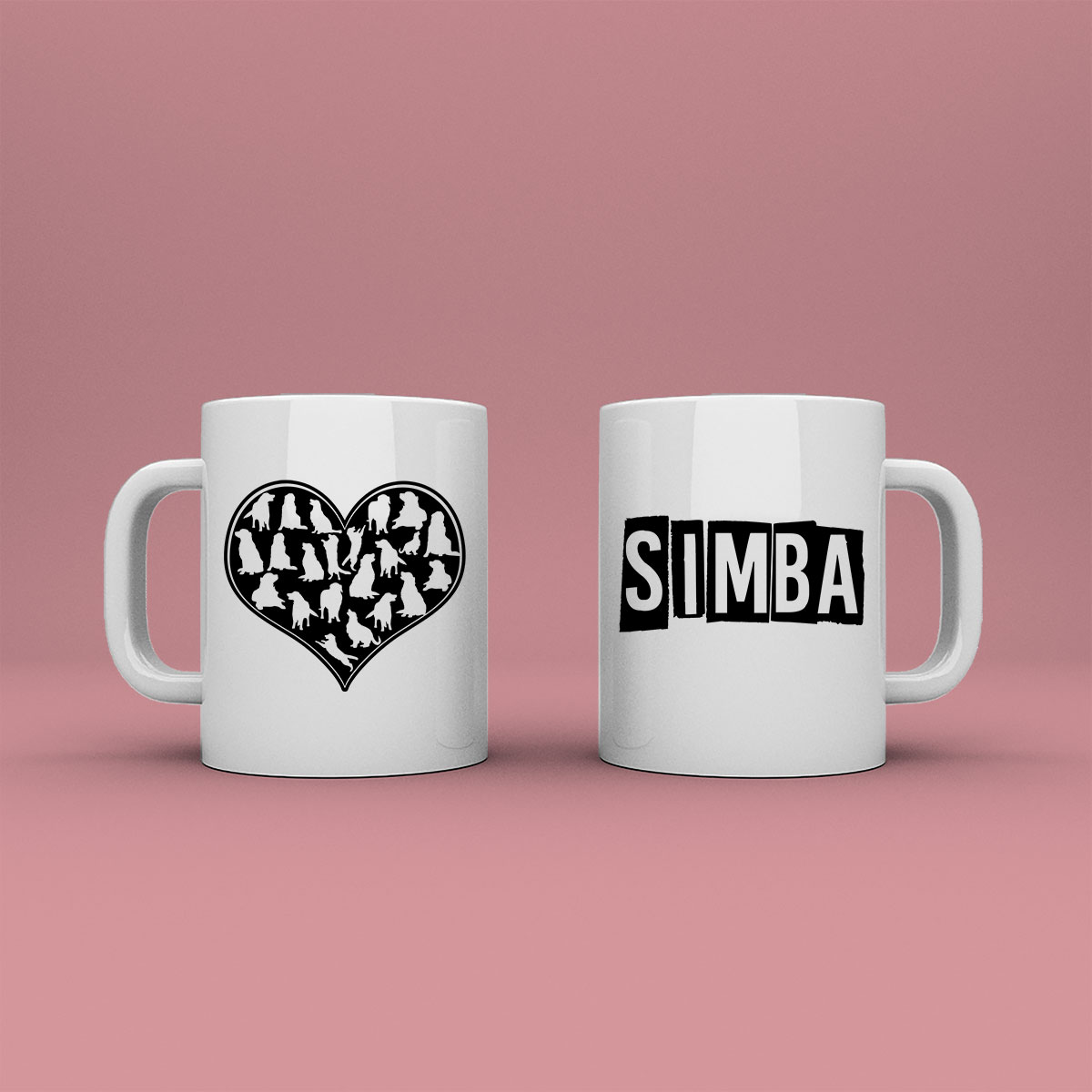 Taza con nombre de mascota corazón de perritos.