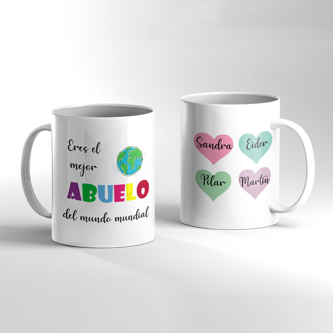 Taza personalizada «Eres el mejor abuelo del mundo» y con los nombres de todos los nietos.