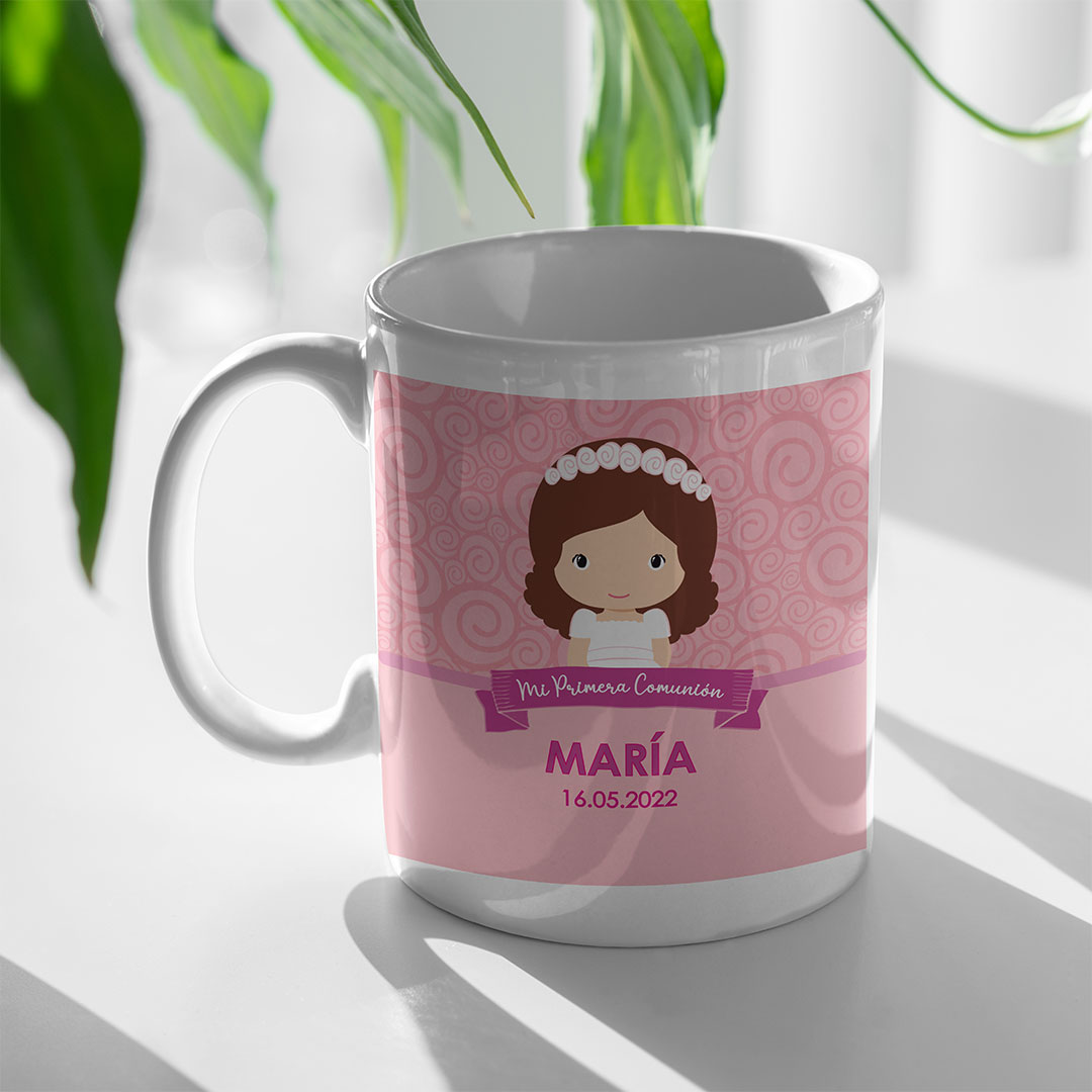 Taza Primera Comunión niña personalizada con nombre, para detalle de 1ª Comunión.