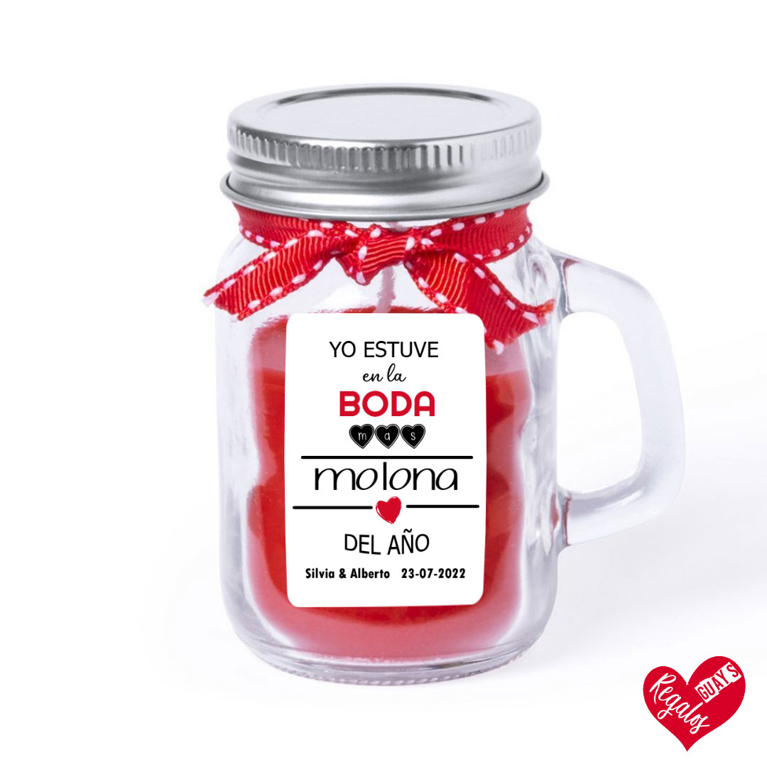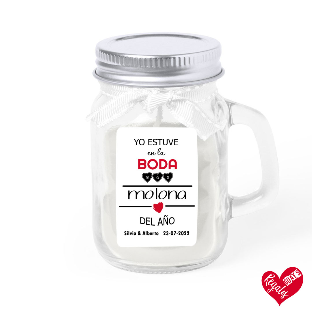 Vela aromática de cristal con diseño «Yo estuve en la boda más molona del año»